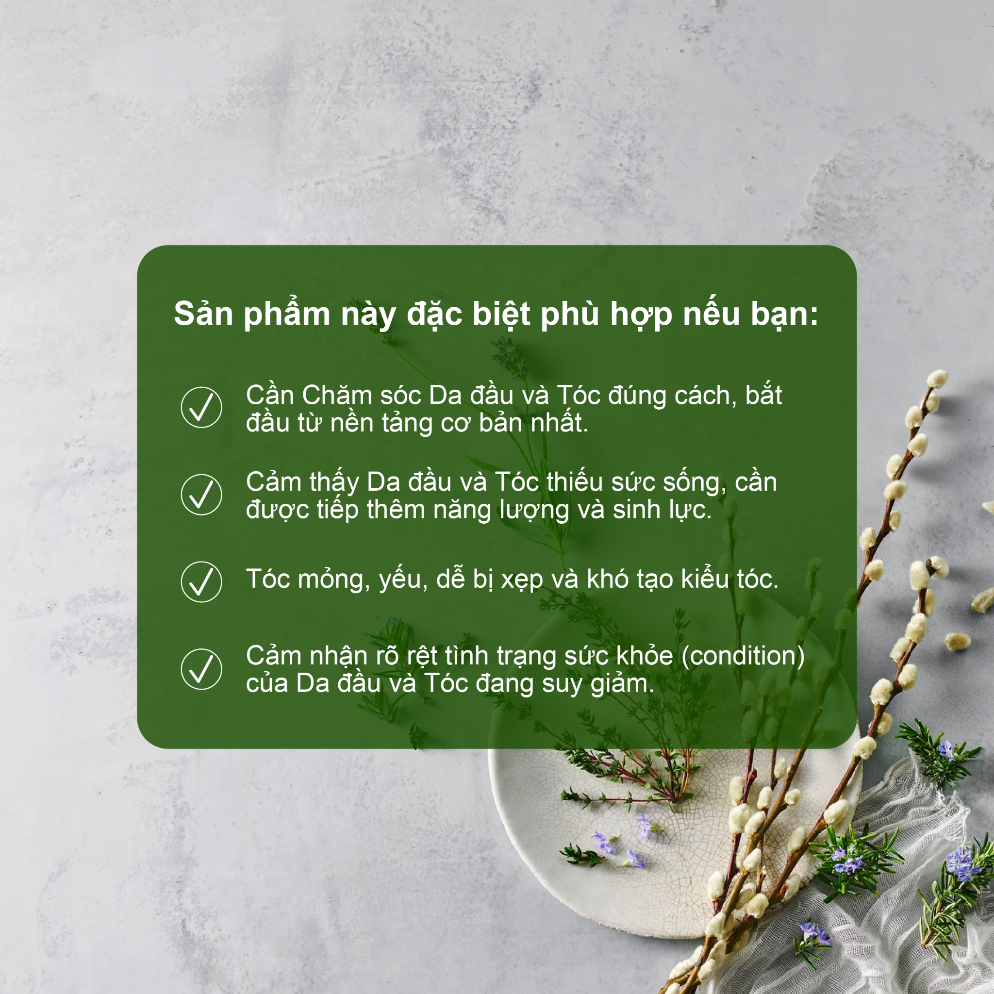 Phục hồi cân bằng tự nhiên cho da đầu.