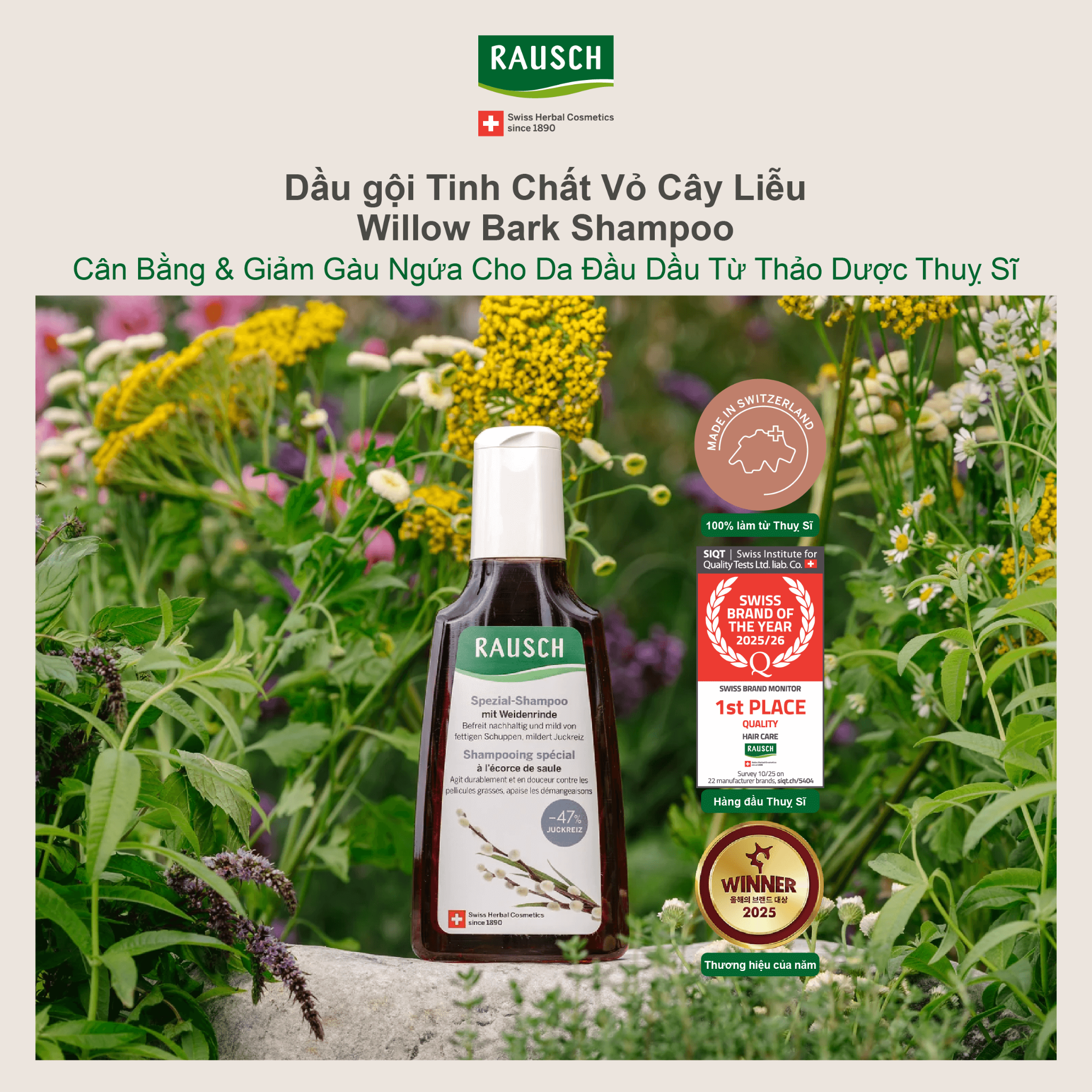 Hiệu quả cao hơn khi kết hợp cùng Tinh chất Rausch vỏ Liễu hoặc Dầu xả Rausch vỏ Liễu.