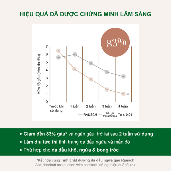 💡 Kết hợp với Dầu xả & Tinh chất Rausch hoa Cúc Dại để tăng hiệu quả giảm gàu và làm dịu da đầu.
