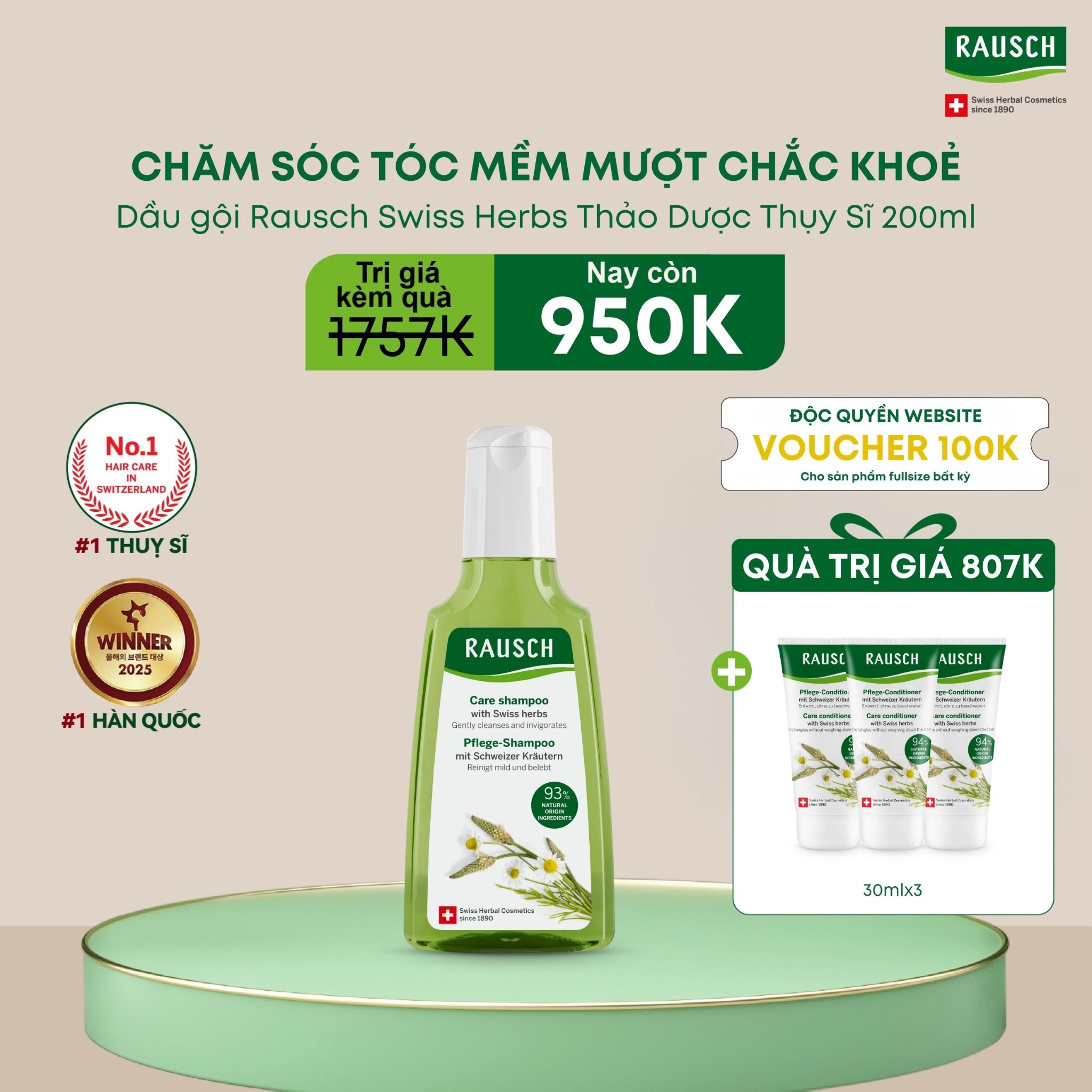 Dầu gội hỗ trợ dưỡng tóc mềm mượt chắc khỏe Rausch Swiss Herbs Thảo Dược Thụy Sĩ 200ml