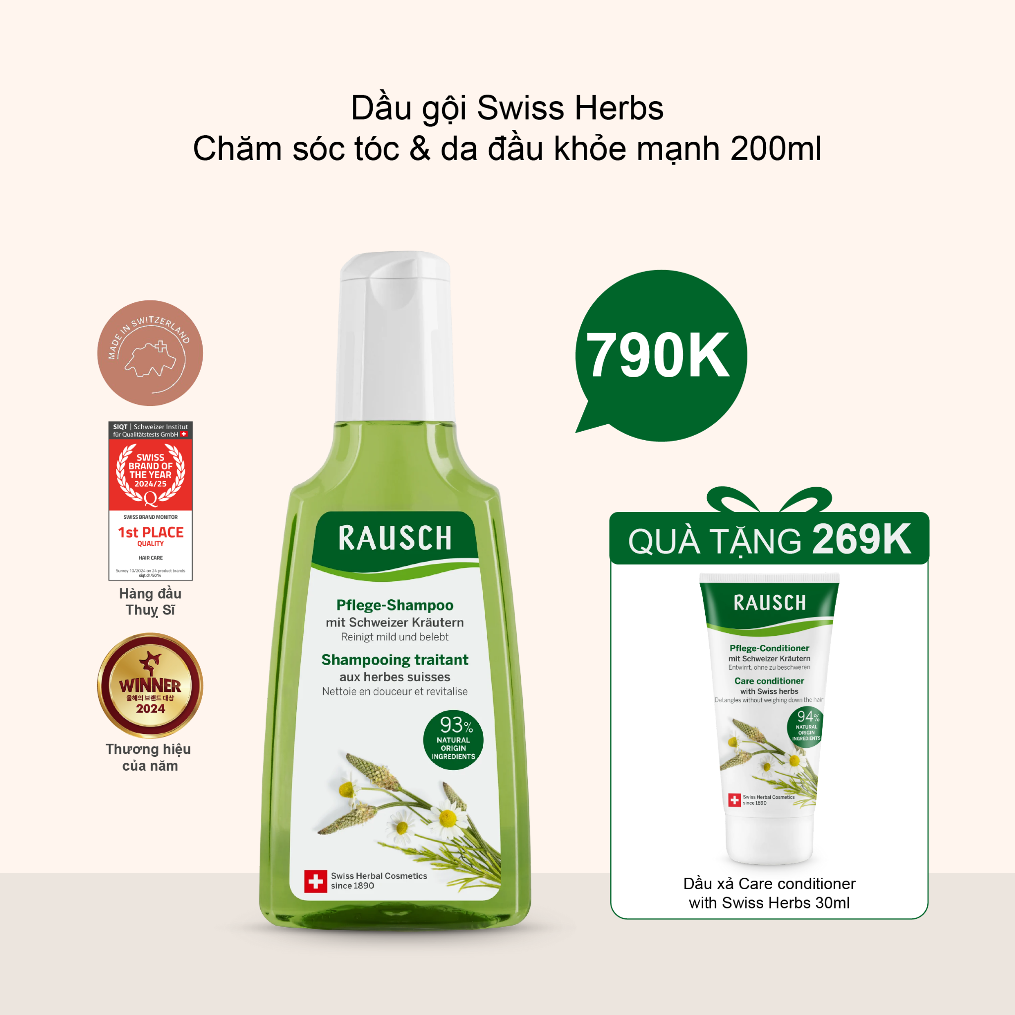 Dầu gội Rausch thảo dược Thụy Sĩ – Chăm sóc tóc & da đầu khỏe mạnh (Swiss Herbs Care Shampoo 200ml)