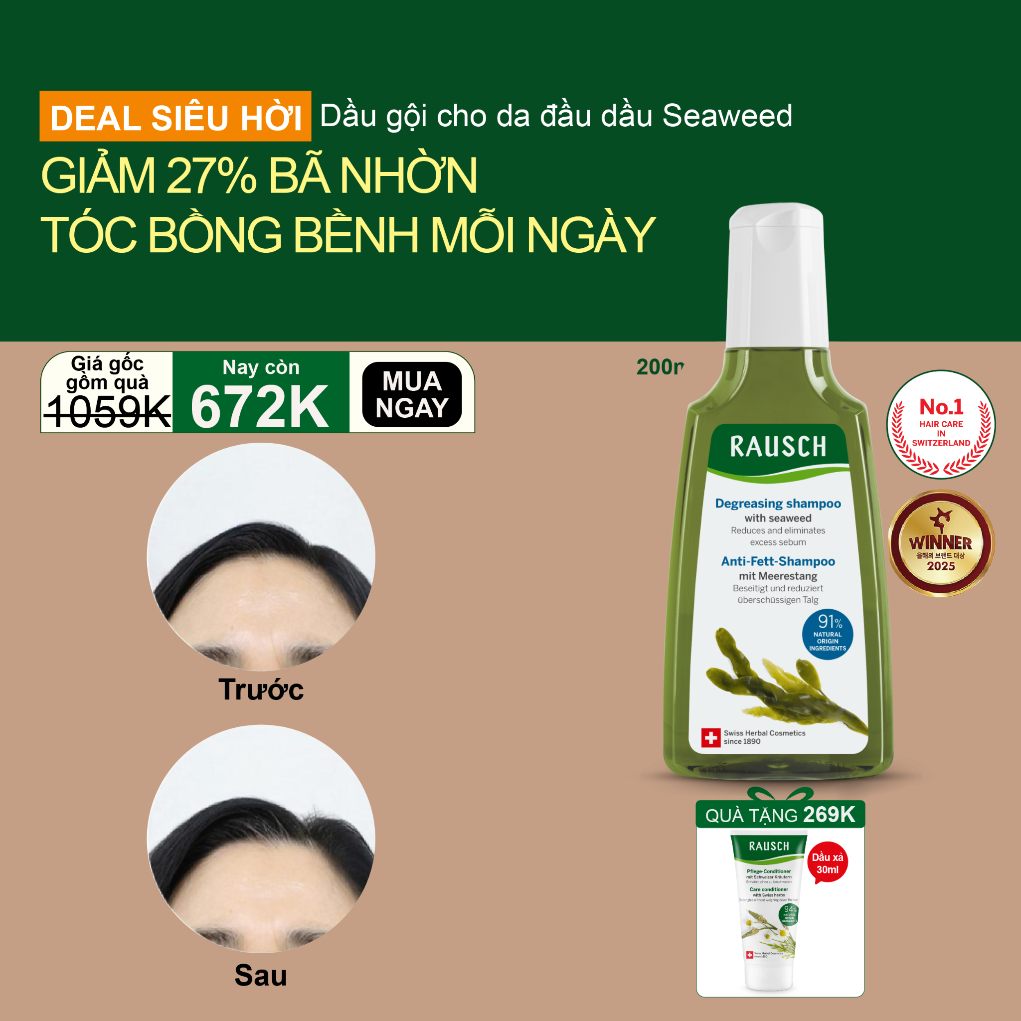 Duy trì cân bằng tự nhiên cho tóc nhờn.