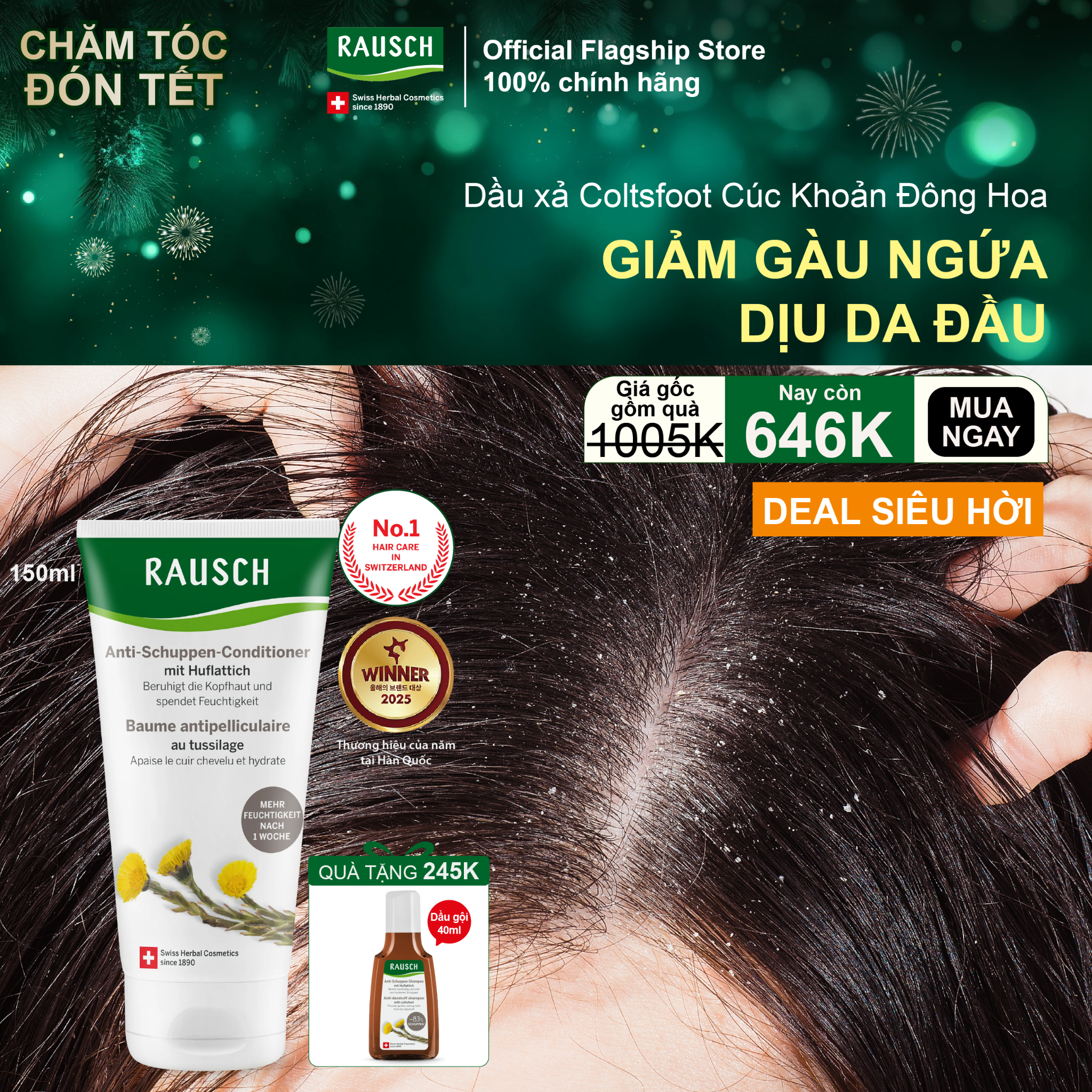 Khi gàu khô và những cơn ngứa da đầu dai dẳng trở thành nỗi bận tâm, Rausch mang đến cho bạn giải pháp chăm sóc chuyên sâu từ Thụy Sĩ. Không chỉ đơn thuần là dầu xả, đây là liệu trình nuôi dưỡng và hỗ trợ cân bằng, giúp da đầu trở nên khỏe mạnh và mái tóc mềm mại, bóng mượt tự nhiên.